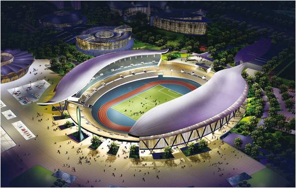 主要功能:主体育场,综合训练馆,游泳跳水馆,网球中心